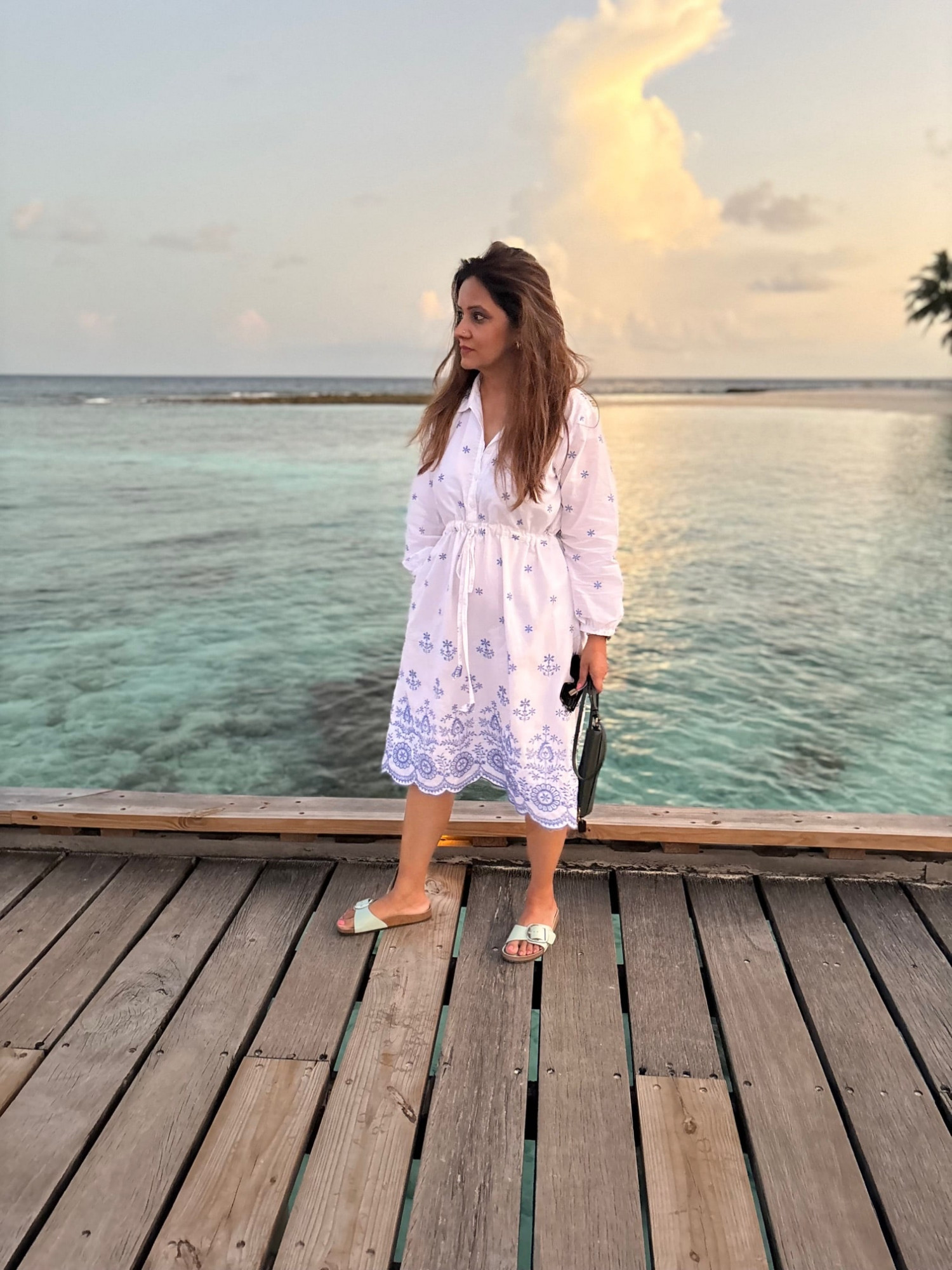 Cotton Schiffli Dress with Lining * Length : 40 inches