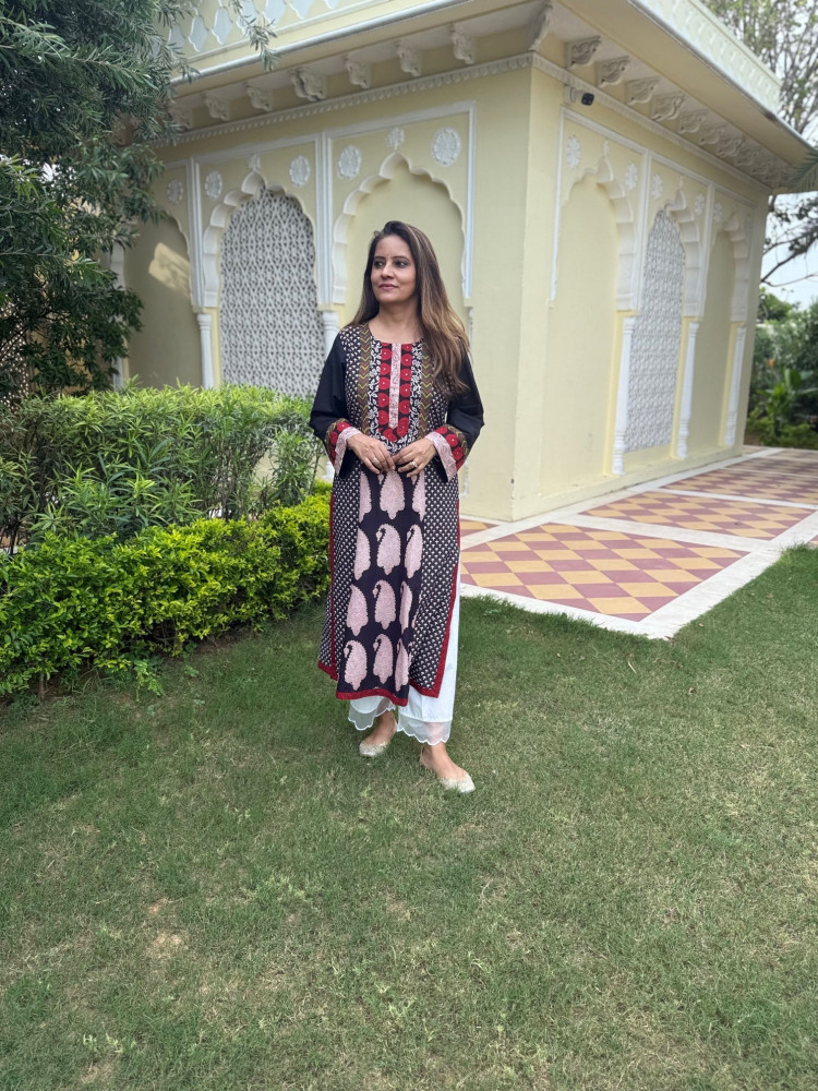 Handblock Printed Bagh Cotton Kurta with Patchwork and Embroidery. * Length : 48 inches