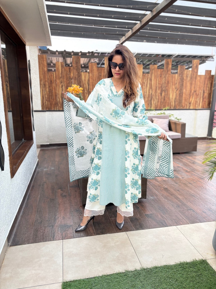 Cotton Kurta with Embroidery on the Neckline. Dupatta is Optional. * Length : 48 inches
