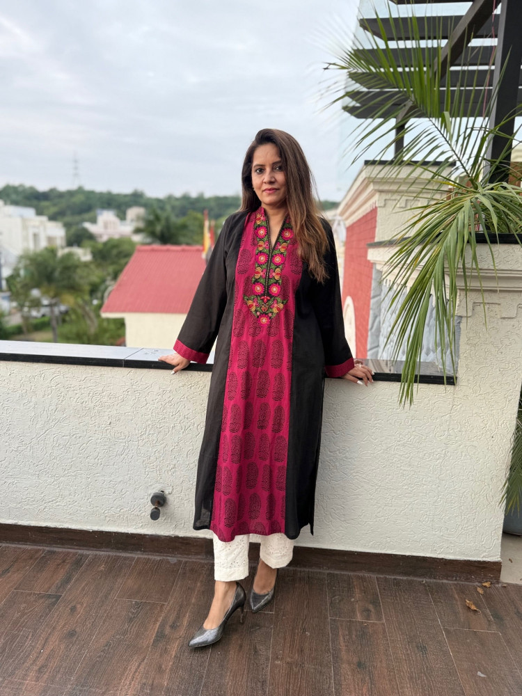 Bagh Cotton Kurta with Patchwork and Embroidery. * Length : 48 inches